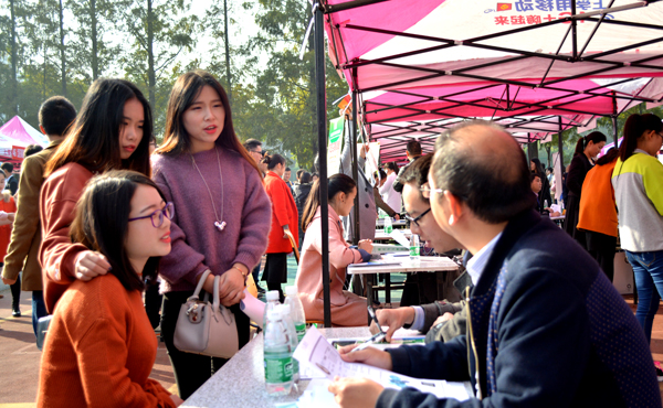 本网讯(记者 吴秀丽)今天(11月12日),公司举办2017届毕业生校园招聘会,来自省内外的近80家用人单位来院招聘,单位性质涵盖了国有控股企业、外资企业、合资企业、私营企业等,为公司应届毕业生提供了3000多个职位,专业面涵盖了公司各个专业,近千名2017届毕业生到场应聘。