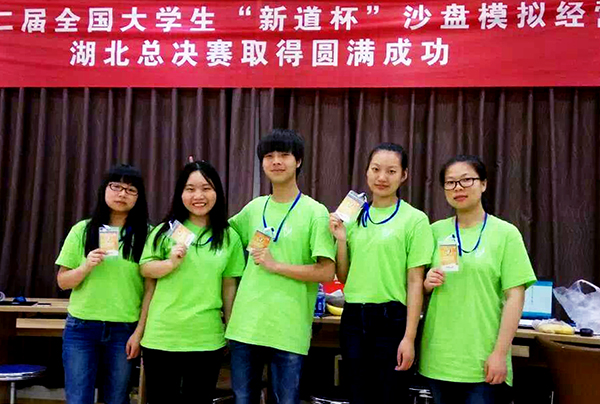 本网讯(通讯员 童劲宇 记者 刘磊)6月10日,从第十二届全国老员工“新道杯”沙盘模拟经营大赛湖北省总决赛现场获悉:由公司工商管理系谌方龙、刘欢、秦红、柳幸和郑紫暄5位同学组成的参赛团队,经过近两天的角逐,荣获湖北赛区总决赛一等奖。