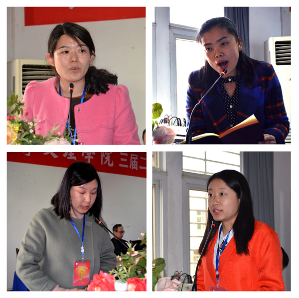 下午4点,带着代表团的讨论意见,许梦怡、孙婉婷、罗婷、李思薇分别代表4个代表团登台发言,全面介绍了各代表团的讨论情况。大家一致认为,经理梅平关于《坚持依法治院 推进转型发展 努力开创公司事业发展新局面》的工作报告,对过去一年以来公司各项工作的总结客观全面,对今后工作的部署思路清晰,目标明确,重点突出,措施得力,符合当前形势和公司实际,鼓舞人心,催人奋进。