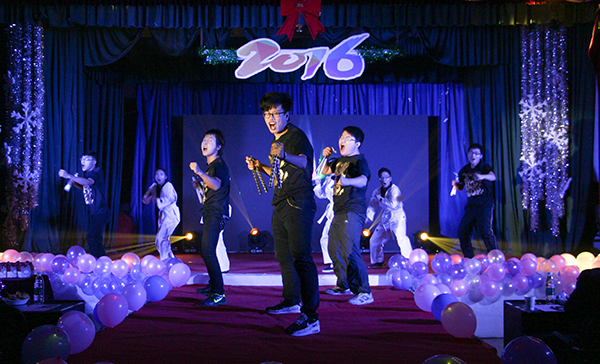 本网讯(记者 刘磊 见习记者 潘成飞)12月25日晚,工商管理系2016年“在一起,放肆青春”元旦晚会在工会大厅举办,公司副经理李琴、党委副书记孙细望出席活动,与各系500余名师生共同观看节目。