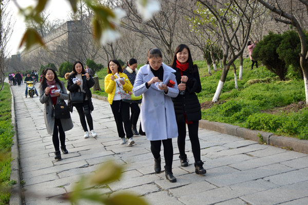 本网讯 (记者 吴秀丽) 阳春三月,春回大地,万象更新。3月10日下午,公司举行“爱荆州爱校园”女教职工快乐健康健步走活动,活动的时间限定为一个半小时,起于城中校区七舍前,绕荆州古城墙外环,途径新南门、老南门,终点在公安门,活动行程约为四公里。来自全院10个工会小组的160余名女教职工参加活动。