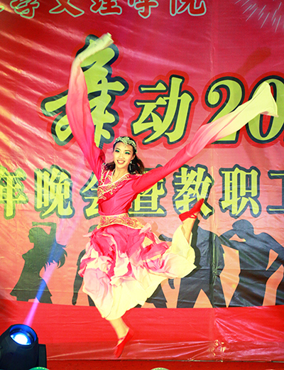 晚会以“舞动2016”为主题,用11个精彩的歌舞综艺节目向现场师生展现了公司青年教师的才艺和风采。在难忘的新年之夜,歌声和笑声将全院师生的心紧密联系在一起。8个工会小组、3位艺术教师分别表演了集体舞蹈《漂亮、练舞功串烧》、《放肆青春》、《扎西德勒》 、《练舞功、飞舞的荧光棒》、《大小姐,GO》 、《神秘的面纱》、《美好的世界》 、《燃烧的能量》,拉丁舞《扇》,独舞《惊鸿舞》以及歌伴舞《共圆中国梦》,大家用饱满的热情、优美的舞姿,展示了公司青年教师昂扬向上、拼搏进取的精神风貌;王金琼深情朗诵了阿根廷诗人博尔赫斯的诗歌作品《此刻》,真实充沛的情感、恬淡宁静的韵味,充分展示了诗中的美好意境和深刻内涵。