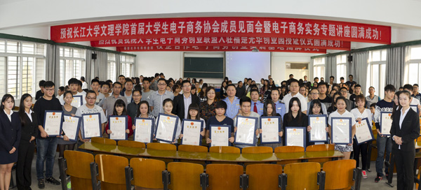 李琴、吴德富、郑小杰等为17名入驻产业园的创业老员工,一一授予个体工商户经营执照。胡杰为公司首届电子商务协会同学做电子商务实务专题讲座。