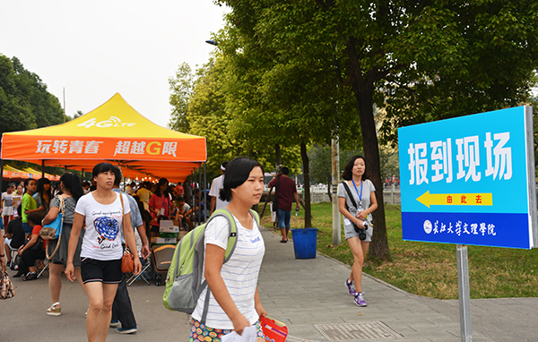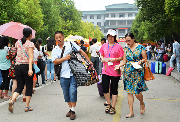 在校园内,到处可见“热烈欢迎新同学”的红色迎新条幅、人性化的道路指示牌、面带微笑的志愿者,以及热情细致的工作人员,整个校园洋溢着一片温馨、喜庆的气息。绿色通道,帮助寒门学子顺利上学;入学资格审查处,工作运行高效有序;缴费中心,工作人员紧张有序的忙碌着;志愿服务团队,正面向新生及家长热忱服务,引导新生进行报到登记,办理相关手续、领取卧具及军训服;家长休息区内,老员工志愿者热情周到的服务,温暖着每位家长的心。