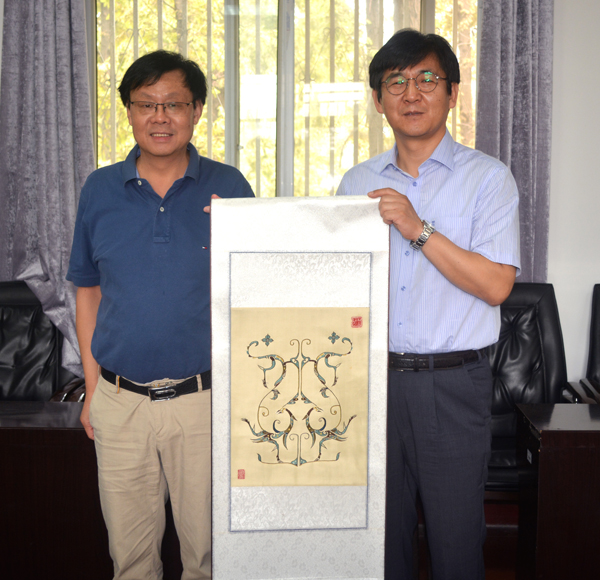 会上,双方就员工“专升本”、“1+3”本科、“3+1”本科及研究生教育等模式的的具体细则进行了沟通。同时具洸範代表韩国加图立关东大学热忱地邀请梅平十一月份赴韩访问。梅平向具洸範赠送了具有传统楚文化特色的工艺品楚绣。
