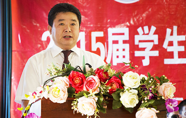 王金琼以《努力超越自己》为题在毕业典礼上发表讲话,教师代表马晓晶以《用智慧开启人生新征程》为题,向毕业生们送上祝福、勉励和希望,毕业生代表秦思军以《不想说再见》为题,代表2015届毕业生表达对母校、师长、父母与亲友同窗的感谢。