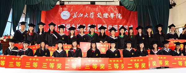 在欢乐的乐曲声中,毕业生们依次走上主席台。领导为优秀毕业生代表、考研学子颁发荣誉证书。