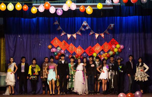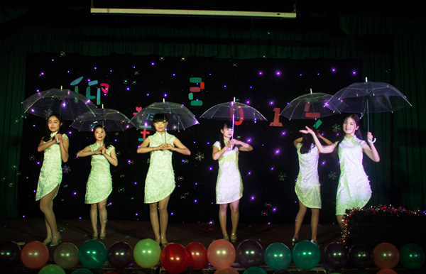 12月25日晚,工商管理系圣诞晚会精彩上演,200余名师生共度欢乐时光。T台上,由旧报纸、白纸、废旧床单、破旧蚊帐、废弃光盘等材料,设计出的酷炫外套、可爱公主裙、唯美婚纱等服饰,风味别具,为观众上演了一出别出心裁的环保时装秀;歌曲大串烧《她说》、《愿得一人心》、《罗密欧与茱丽叶》、《小酒窝》、《当我们红尘作伴》唤起了现场观众的回忆,赢来阵阵热烈掌声。