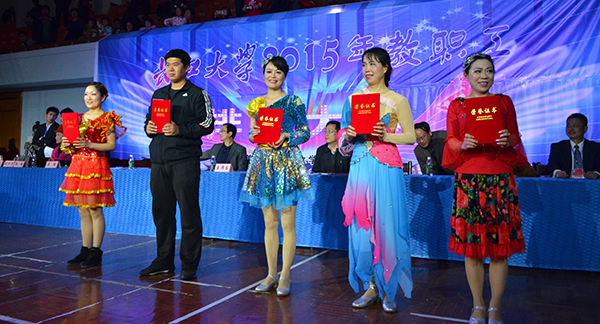 本网讯(见习记者 王抒曼)4月11日下午,VSport 2015年教职工排舞大赛在东校区体育馆隆重举行。全校25支参赛队386名选手上演了25支精彩舞曲,近千名师生共享艺术盛宴。