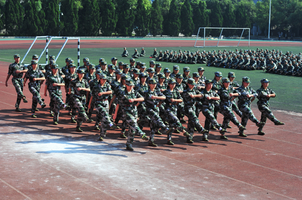 国歌激昂,回声嘹亮。阅兵式上,全体新生以良好的精神面貌、扎实的军事素养展示了15天的军训成果,列队展示、擒敌拳表演获得了现场雷鸣般的掌声。