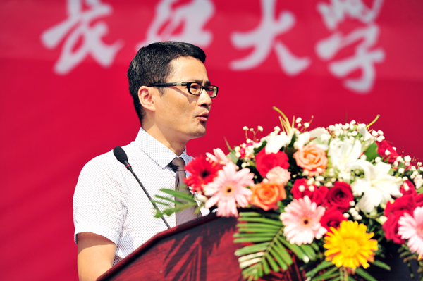 教师代表人文系甘泉老师将自己的教学感受分享给新生,指导新生做好个人规划。他指出,端正的学习态度是首要的,其次就是宽容、沟通和交流。“年轻时的喜乐苦寂都是修行”甘泉说道,“只要我们每一天都认真地对待自己的生活、学习,那么四年后必将无愧于你的内心。”