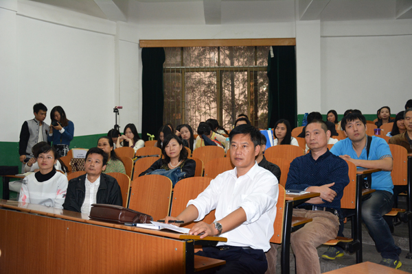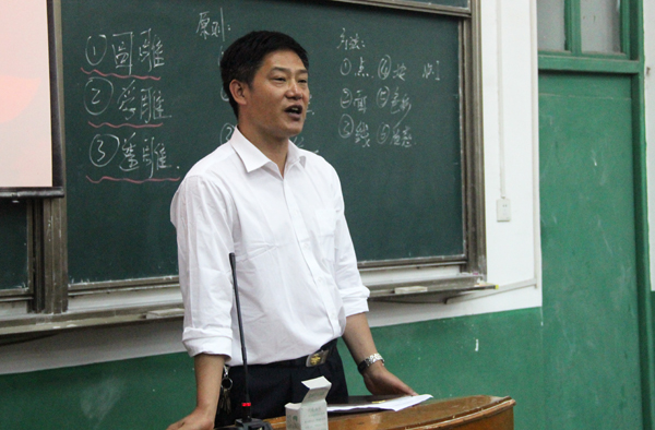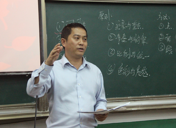 讲课现场座无虚席,氛围热烈,马艳丽围绕“广告创意的特征”这一授课主题,选取了丰富的素材,将生动的PPT演示与课堂创意设计相结合,阐明了广告创意的6大特征;吴文洁以流畅的日语教学贯穿全程,解读了日语中汉字书写的方式和翻译技巧;陈亮以视频展示了荆州著名景观的装饰类小品设计,分析了各类作品的特色;王春鸽通过边口述理论边演示算术的运算方法,使枯燥的函数计算变得简单易懂……