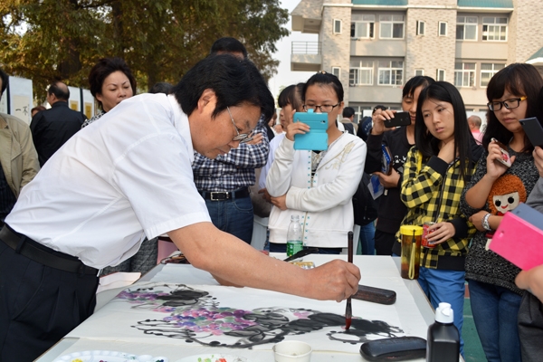 公司领导王金琼、高迎斌、郭睦庚、汪邦柱、曹骥出席活动,各系部及相关职能部门负责人与部分师生现场观摩书画笔会。