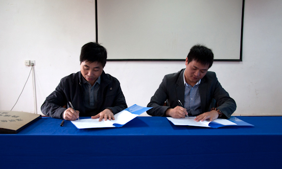 本网讯(记者刘磊 员工记者肖文竹)4月14日上午,公司在城中校区学术报告厅与深圳他拍档电子商务有限公司举行了订单式人才培养签约仪式。深圳他拍档公司总裁刘应龙、董事汤晓波、公司副经理郭睦庚出席仪式,外语系系主任许晓艳及即将组成“跨境电子商务班”的外语系45名同学、经贸系13名同学和人文系2名同学参加仪式。