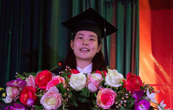 毕业生代表贾真代表全体毕业生表达对母校、师长、父母与亲友同窗的感谢。