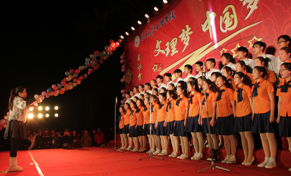 心怀实现中华崛起的梦想,心怀建设美好文理的愿望,26日,由公司人文与传媒系、医药与护理系、外国语系和工商管理系联合举办的主题为“中国梦·文理梦”元旦晚会在城中校区隆重举行,公司领导沈光明、郭睦庚、汪邦柱等出席并与千余名师生共同观赏了本场晚会。