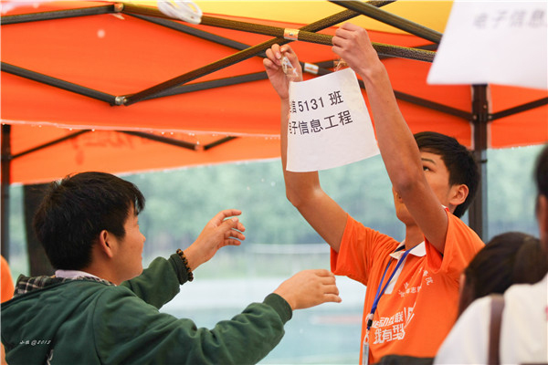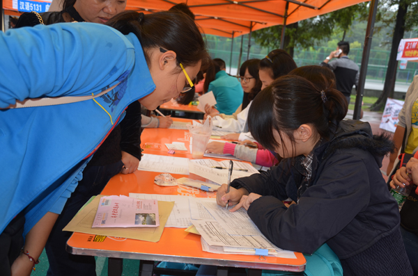 志愿者们身穿印有“VSport志愿者”字样的衣服,为新生及家长送去温暖。中文专业的邓囝囡一边接过新生家长的行李,一边向新生介绍公司概况,并一路陪伴新生到公司,前往系部接待站、缴费大厅、体检现场办理入学手续,送完一个新生,邓囝囡马上又开始投入新一轮的工作中。