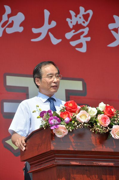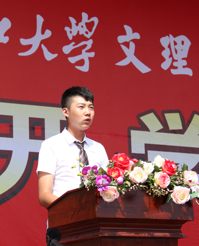 经济与贸易系国贸5132班林威同学作为新生代表发言。他在入学感言中,代表全体新生庄严承诺,将恪守校训,严格律己,勤勉求学,拼搏奋进,在翰墨飘香的大公司园编制灿烂的文理梦,努力成为求实创新、勇于开拓和博学多才的新文理人。人文与传媒系广电5101班杨青同学作为在校生发言。她欢迎2013级新同学加入VSport的大家庭,鼓励同学们在母校的优雅环境中努力奋斗,刻苦学习,珍惜宝贵的大学时光,挥洒青春和汗水打造精彩的人生。