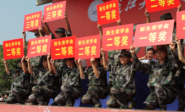 典礼上,公司副董事长刘在洲,院领导沈光明、袁先海、王金琼、郭睦庚、汪邦柱等,分别为2013级新生军训工作先进单位及个人、2012-2013学年度优秀班集体及个人、2012-2013学年度“优秀辅导员”和获2013级新生奖学金的22名同学颁奖。荆州移动城区营业部总经理丰雷为获得“中国移动”奖学金的同学颁奖。