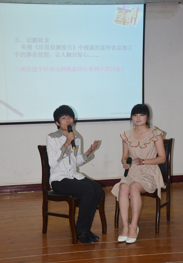 同台竞技环节,选手通过现场抽签,和其他选手同台主持。1号屠思琪和9号张程就“酒香也怕巷子深”这一话题进行辩论,屠思琪认为是金子总会发光,是人才就不会被埋没;而张程则以“千里马与伯乐”这一寓言故事,表明再好的人才也需要机遇,两人妙语连珠,举例论证,听得观众津津有味、意犹未尽。