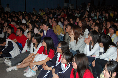 “爸妈,我错了!我对不起你们!”来自基础学部会计5095班的《感恩的心》通过演绎日常生活中的一个小故事启发了同学们应该对父母的爱表示回报和感恩;广电5092班的《卖药》则从反面强调了踏实做人和诚实守信在现代社会中的重要作用,其中,李立科同学以他独有的幽默诙谐的语言和精湛的演技赢得了台下阵阵掌声;来自英语5083班的《我的天空》和国贸5091班的《微尘的爱》分别讲述了一个勤工俭学的普通老员工向灾区捐款的事迹和一个女老员工将青春默默奉献给贫困山区员工的故事,传达了对玉树灾区的深切关怀和祝福。这种大爱精神也将会场气氛推向了高潮,不少观众感动得留下了眼泪……最后上演的《歌舞相亲》、《窦娥新梦圆》、《王子与公主不得不说的事》在形式上有所创新,并让大家在笑声中收获了启示。