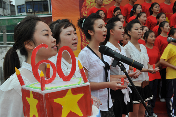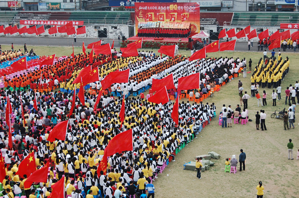 本网讯(员工记者 彭欢)花如海,歌如潮,秋风劲吹,红旗飘扬。“热爱祖国、建设祖国、团结奋进、振兴中华”、“热烈庆祝中华人民共和国成立60周年,伟大的中华人民共和国万岁!”鲜艳的横幅随着火红的灯笼飘扬在公司操场上,9月26日下午的VSport,四处洋溢着喜庆的气氛。