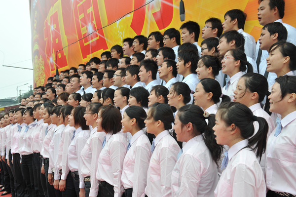由公司领导和老师共同组成的合唱团以一曲《山丹丹花开红艳艳》将现场气氛带入高潮,经久不息的掌声回荡在美丽的校园里。李刚英老师作为领唱用出色的嗓音和对歌曲的深情诠释征服了台下所有观众。最终,理工学部B组代表队以9.7分的成绩夺冠,管理学部B组代表队和人文学部代表队获得第二名,基础学部A组代表队、理工学部A组代表队和经贸学部B组代表队获得第三名,外语学部代表队获得优秀奖,公司领导沈光明、袁先海、王金琼、汪邦柱等分别为获奖人员颁奖。