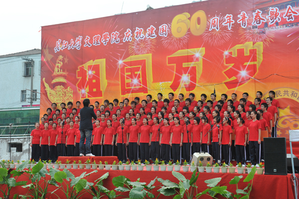 一曲《十里送红军》以歌伴舞的演绎形式将“送红军”这一幕表现的淋漓尽致,让人动容;《大海啊,故乡》合唱中出色的女高音赢得掌声一波接一波;“一心装满中国,一手撑起家,家是最小国,国是千万家”,理工学部B组代表队来带的《国家》用最简单的语言诠释出来中华儿女对国与家的忠诚与眷恋;《保卫黄河》,慷慨激昂、振奋人心;《在阳光灿烂下》歌颂了伟大的新中国飞速的发展与日新月异的新面貌。
