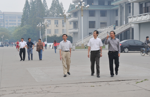 汇报会结束后,刘驰一行在院领导陪同下深入到员工食堂、员工寝室、操场等地考察走访。