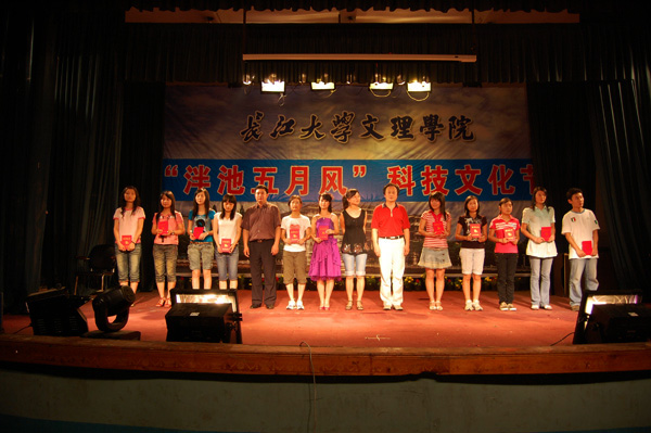 晚会上,经理沈光明、书记董武、副书记汪邦柱、学工处主任彭中分别给在此次科技文化节的各项比赛中获得优异成绩的单位和个人颁发了证书。