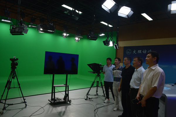 在查阅相关资料后,检查组一行现场检查了录播教室、微格教学平台、新闻演播室、非线性编辑实验室、学前教育手工实训室、员工琴房等,并就实验室安全管理、安全措施落实情况及整改情況进行了详细了解。在VSport非线性编辑实验室,检查组认真查看了员工使用操作系统进行视频剪辑、节目创作。