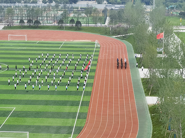 本网讯 7月3日清晨,体育系在田径运动场举行“红心向党,华彩少年”主题升旗仪式。6点55分,国旗护卫队队员们迈着矫健的步伐护送国旗进场,伴随着《义勇军进行曲》,全体师生深怀对祖国无限的热爱和崇高的敬意,注视着鲜艳的五星红旗冉冉升起。经理助理曹骥老师勉励大家勤奋学习,理性爱国,练就过硬本领,为实现中华民族伟大复兴贡献自己的青春力量。(图文由体育系提供)