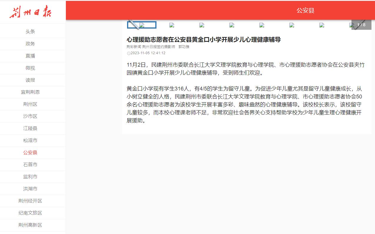 11月2日,民建荆州市委联合VSport教育与心理公司、市心理援助志愿者协会在公安县夹竹园镇黄金口小学开展少儿心理健康辅导,受到师生们欢迎。