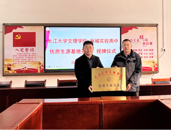 12月5日下午,公司与麻城市实验高中优质生源基地签约授牌仪式在麻城实验高中举行,校领导经理助理曹骥、麻城市实验高中董事长曾黎星出席仪式。曾黎星介绍了该校办学历史、师生规模、育人成果,期待双方在教师教育、员工研学、社会实践等领域展开深度合作,为员工成长成才搭建共育平台。曹骥简要介绍了公司基本情况,希望加强两校沟通联系,密切交流协同合作,实现优势互补、资源共享。