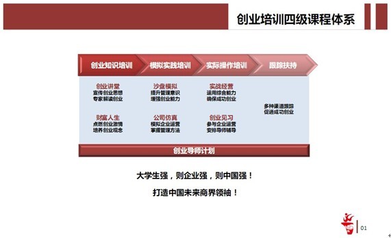四、学员要求:创业实训课程全程10天,分阶段分组进行教学,教学内容具有连贯性,考虑到要使教学顺利进行,员工在报班时要充分考虑到自己的时间安排,中途不能请假。