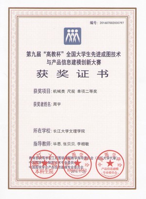 此次为公司首次参赛,为做好大赛工作,机电与信息工程系精心组织、积极准备,机械5131班虢诗影、范培文、武安星,机械5141班周宇、胡国栋组成的参赛团队获机械类工业产品设计二等奖。同时,虢诗影获个人建模二等奖,范培文、武安星、周宇、胡国栋分获个人尺规单项二等奖,电工5141班叶文函、刘坚获个人尺规单项二等奖。
