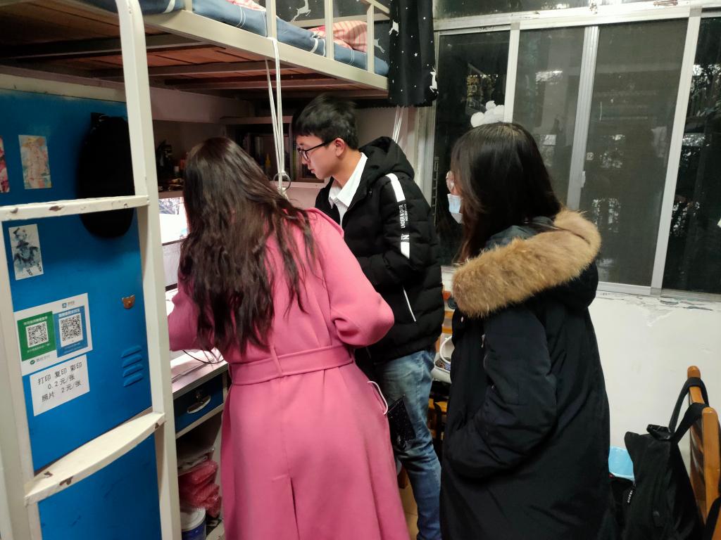 会后,燕梦蝶、陈质晶深入员工宿舍进行检查,向同学们送上关切地问候。以严谨的态度,对各间寝室依次敲门拜访,了解同学们的到校情况、生活质量和学习准备,并指出寝室生活中的安全隐患。走访活动,促进了师生之间的交流,增强了同学们的安全意识,为大家的校园生活构建了一道安全防线。