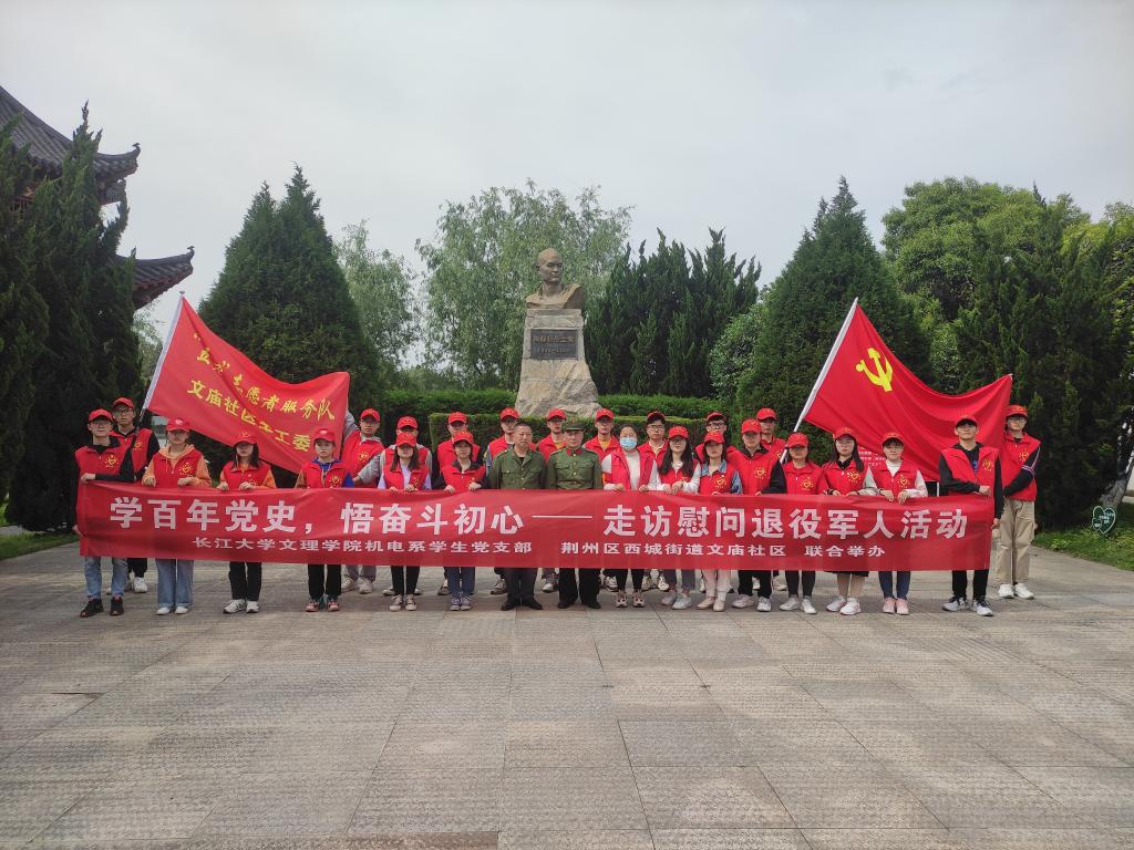 本网讯(员工记者 刘文婷 周晶晶)时值建党一百周年,为激发同学们的爱国热忱,增强大家的责任感和使命感,4月28日下午,在文庙社区,我系员工党支部与文庙社区关工委联合举办“学百年党史,悟奋斗初心”走访慰问退役军人活动。活动由我系员工党支部组织开展,全体在校员工党员、预备党员、发展对象及部分志愿者参加。