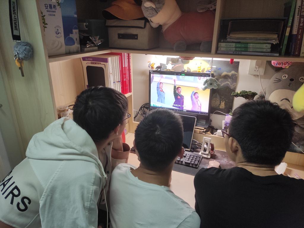 直播开始,同学们通过观看党史知识竞答、红色歌舞表演及红色影视片段,聆听教授们的精彩解析和先辈们的革命故事,重温了我党的艰苦岁月和革命先辈们的顽强拼搏。在观看党史竞答环节时,同学们相互交流,相互学习,在紧张激烈的比拼中提升自身党史知识水平。