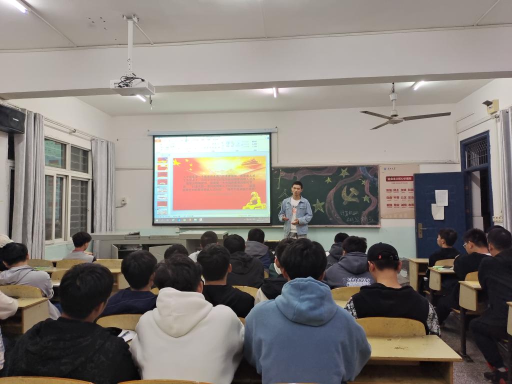 团课开始,主持人通过播放有关中央人才工作会议的视频,念诵习近平总书记在会议上发表的重要讲话,围绕“新时代青年的使命与义务”、“新时代人才强国战略”、“国家的综合国力”等方面,详细阐述了党重视培养人才、团结人才、成就人才的方针及路线。计算机5201班的吴家佳说到:“作为当代青年老员工,我们应不负韶华,不负使命,为国家发展、民族振兴不懈奋斗。”。
