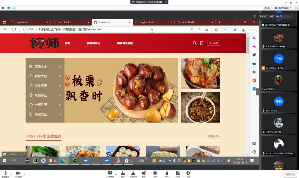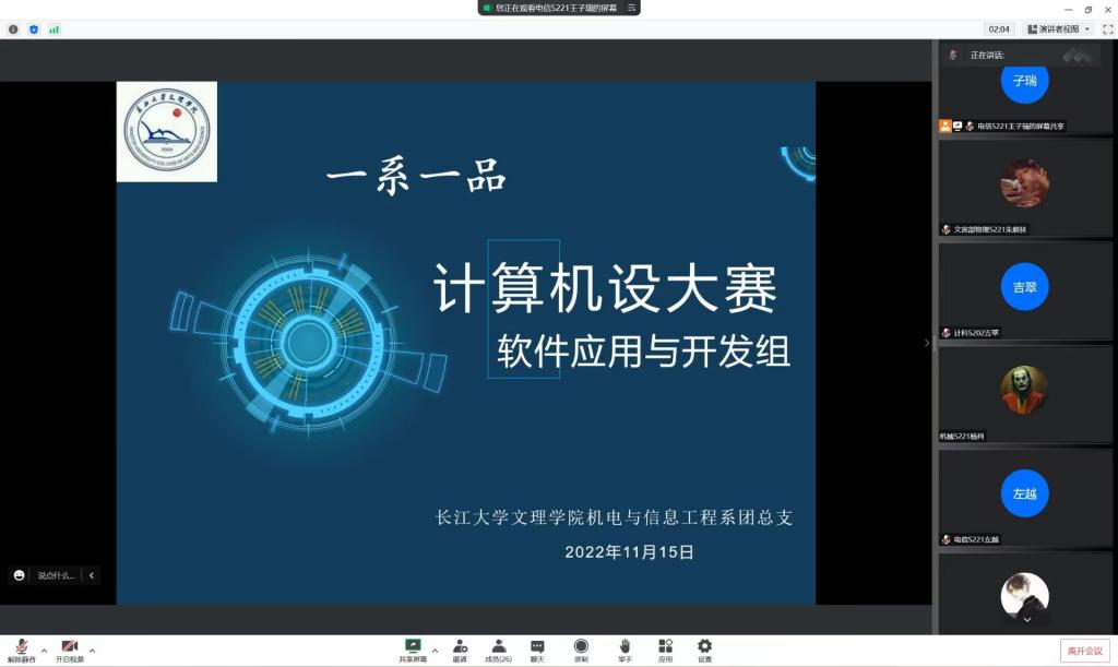 本网讯(员工记者 黄盼盼)11月15日中午,在腾讯会议平台,我系“共襄二十大,礼赞新时代”计算机设计大赛决赛成功举行。本次比赛特邀我系全体辅导员、计算机教研室主任熊守丽出席并担任评委,百余名同学线上观看。