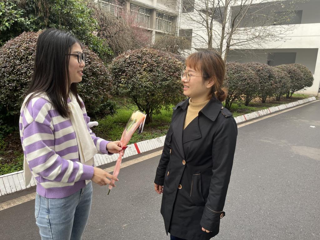 本网讯(员工记者 吴家佳)为庆祝“三八”国际妇女节,营造健康、和谐、积极向上的师生氛围,使公司女教师度过一个温馨快乐的节日,展示公司女教师教书育人的精神风貌,3月8日,公司员工自发为女教师献花送祝福,表达对女教师的感谢之情。