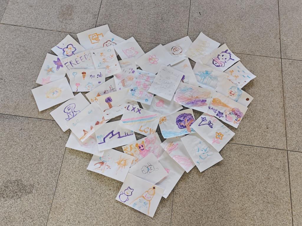 “随‘心’所图,青春绽放”主题涂鸦活动中,同学们根据自己天马行空的想象给图案赋予任意的颜色,尽情地展现内心,宣泄压力。