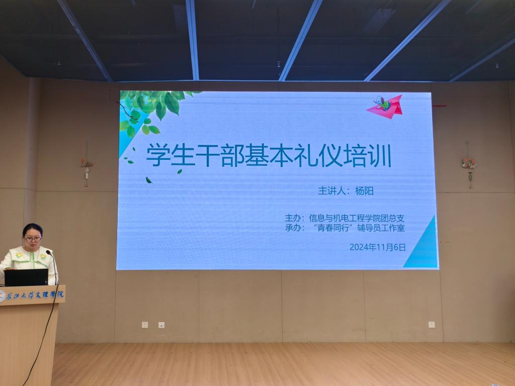 会议伊始,主持人致开场词并介绍到场嘉宾。杨阳老师就员工会工作场景与日常礼仪问题进行讲解,从办公室礼仪、电话礼仪及活动礼仪等方面提出要求,强调整洁而不过分修饰的仪容仪表是员工会开展工作的重要前提。