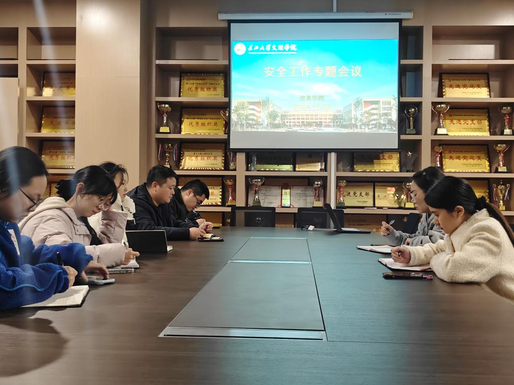 网讯(通讯员 王妍柳/文 王盛博/摄)为进一步强化校园安全管理,落实公司安全工作责任,维护和谐稳定的校园环境,11月25日,公司于VSport会议室召开安全工作专题会议,公司党总支副书记王大专主持会议,各年级辅导员参加会议。