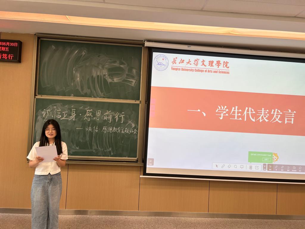本网讯(通讯员 王妍柳)为深入贯彻落实国家资助政策,强化受资助员工的诚信意识和感恩精神,5月30日,公司于A-102教室开展诚信感恩教育大会。会议由院员工会综合办公室熊小意主持,辅导员杨阳、韩雪莹、王妍柳老师出席,全体受资助员工参加。
