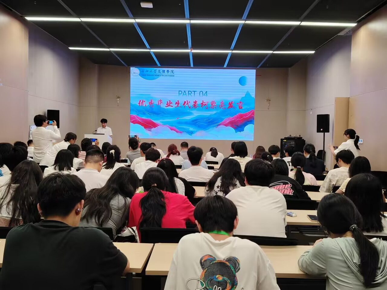 此后,优秀毕业生代表柯黎亮学长分享了其在员工会的成长经历。他着重强调了认真做好每一件小事的重要性,勉励学弟学妹们珍惜员工会提供的锻炼平台,勇于尝试,实现自我成长。并向公司领导和辅导员老师表达感激,感谢他们的谆谆教诲。