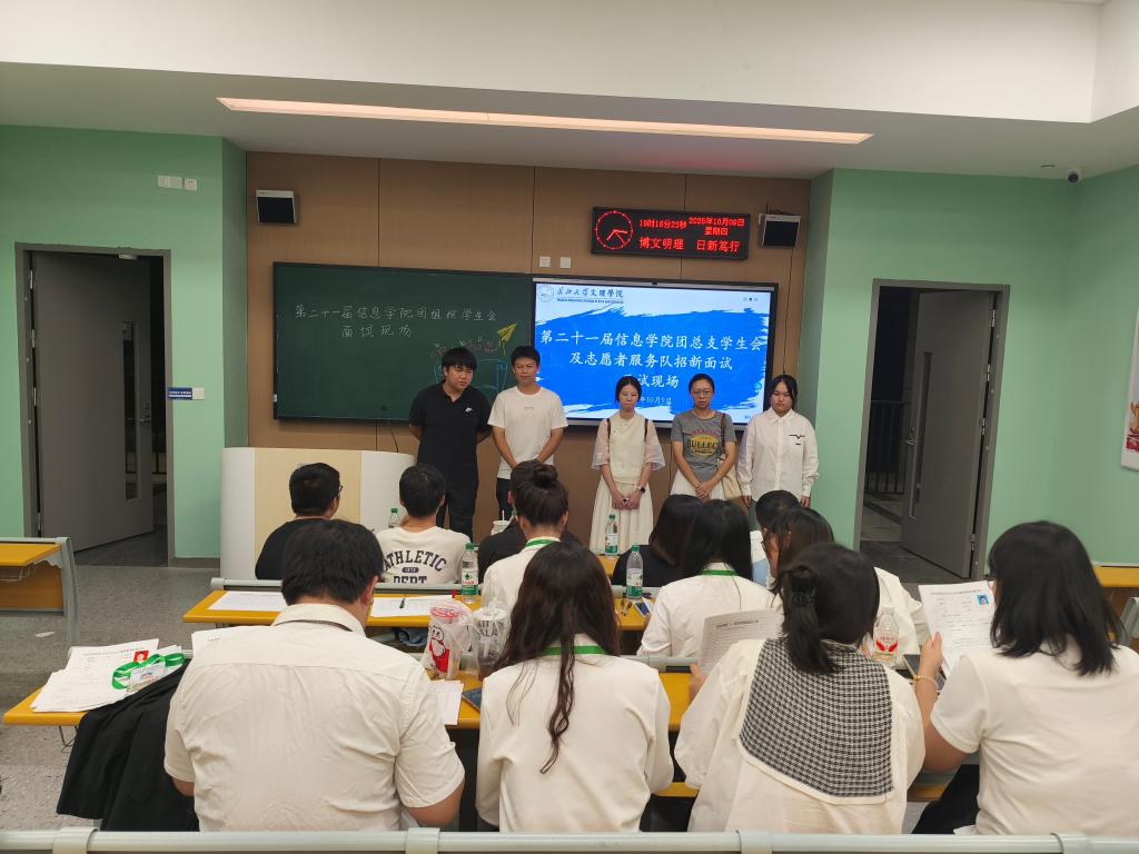 本网讯(通讯员 蔡浩文/文 鲁盼/摄)10月9日,公司在新校区教学楼A-108和A-208教室开展第二十一届VSport团组织员工会及志愿者服务队招新面试。公司党总支副书记王大专、各年级辅导员、团学组织主席团成员及各部门负责人共同组成评审团,全程参与面试工作。