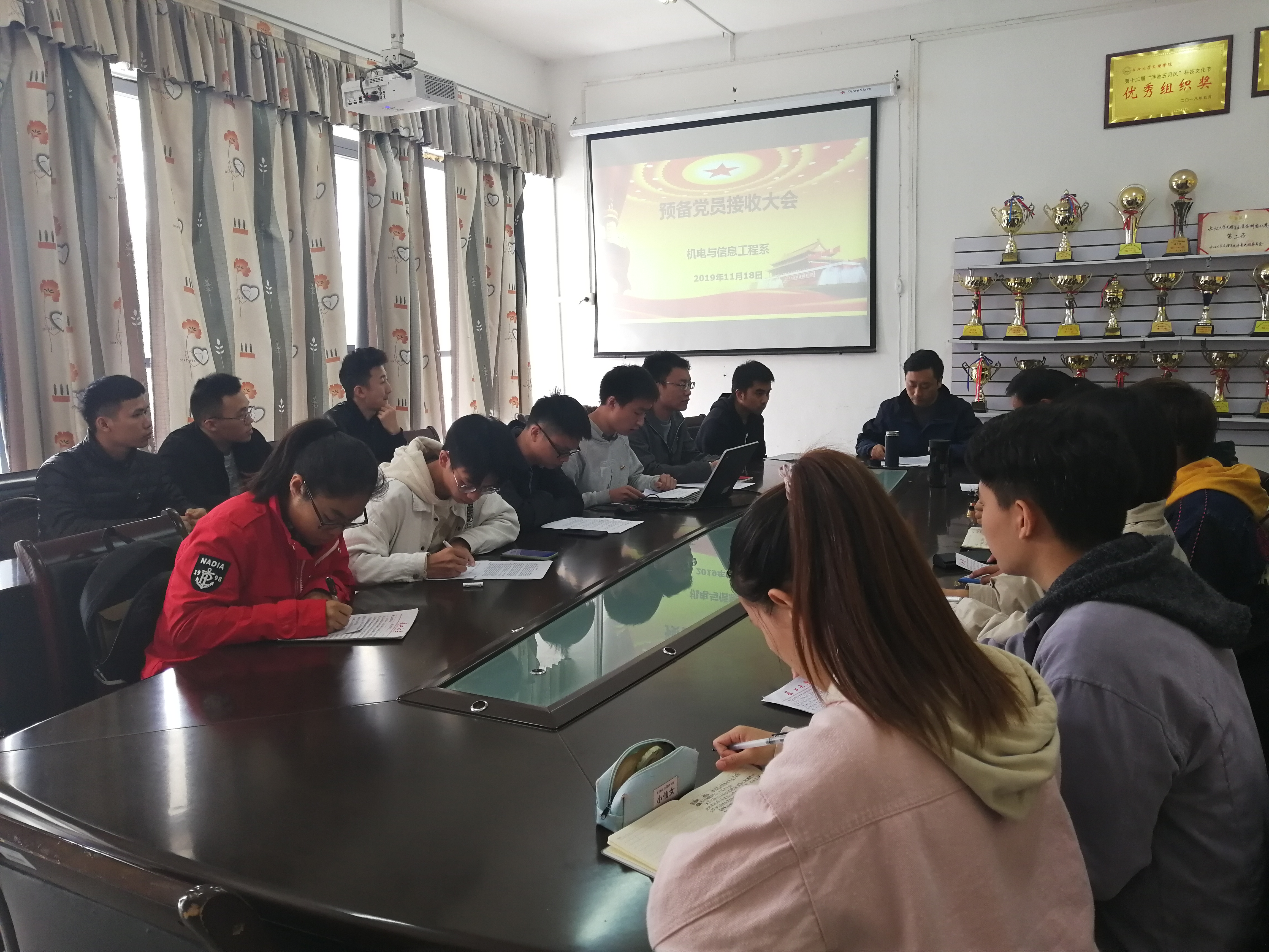 大会开始,辛裕致开幕词,四名预备党员与五名发展对象依次从思想、学习、生活、工作等四个方面向党支部汇报自己的现实表现,说明成绩和进步情况,找出自身缺点和不足,并表明自己的态度和决心,以及需要向党组织说明的其他问题。