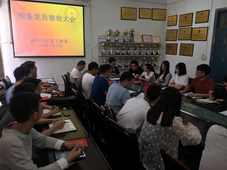 本网讯(通讯员 张仁贵)5月22日中午,在公司西校区一教4楼机电系会议室,我系员工党支部分别召开预备党员接收大会,讨论宋聪聪、吴神鞭、杨小丰、钱瑞、熊梦圆、刘文婷6名发展对象入党相关事项。入党介绍人及6名发展对象培养联系人一同参与,会议由党总支副书记辛裕主持。